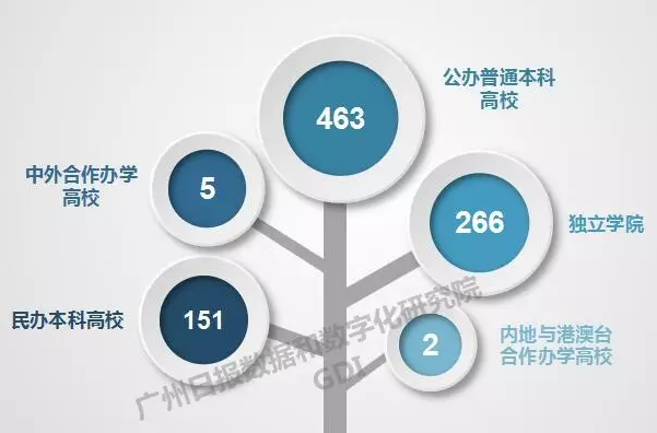 3月23日,广州日报数据和数字化研究院(GDI)发布“2017广州日报应用大学排行榜”,这是国内首个全样本应用大学排行榜,也是权威媒体作为第三方评估、发布的专业性公益榜单。GDI以应用指数、学术指数、声誉指数、二次评估指数四个一级指标建构综合指数,科学评价国内887所本科高校(非博士培养单位),推出“2017广州日报应用大学排行榜—TOP800”以及“独立学院TOP100”、“民办本科高校TOP100”等四个子榜单,其中应用指数在国内属首次提出。“2017广州日报应用大学排行榜”首次把公办普通本科高校、独立学院和民办本科高校在同一体系下进行评价,将有利于引入竞争机制,激发高校办学活力,推动本科高校向应用型转变,打造应用大学评价体系的中国标准。