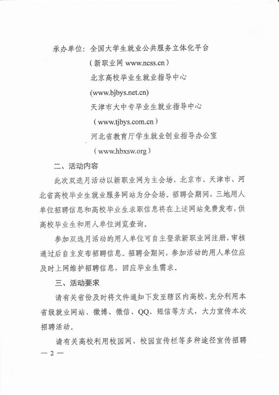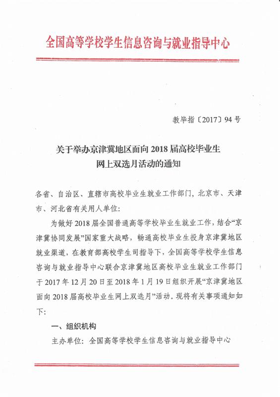 关于举办京津冀地区面向2018届高校毕业生网上双选月活动的通知