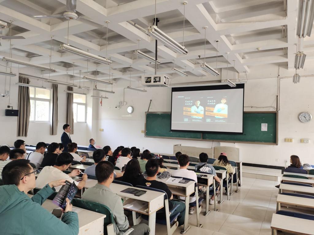 宣讲会伊始,张女士简洁地介绍公司目前的情况,随后通过宣传视频就该公司的公司简介、企业文化、发展历程、全球布局及产品展示等方面进行了仔细的介绍。期间,公司举行答题抽奖活动,既加深了大家对公司的了解,又活跃了宣讲会的气氛。接下来还就晋升通道、培训体系、福利待遇进行了详细的讲解。最后,公司对同学们进行了简单的面试和投递简历环节。