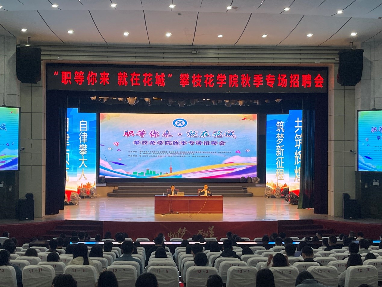 8:30--10:00,市人力资源和社会保障局副局长徐洪江、学校招生就业处负责人在会堂对我校2023届毕业生进行了就业创业政策、求职技巧专题讲座,攀枝花5家优质企业开展了企业文化、岗位需求、职业规划、发展愿景等方面的宣讲。