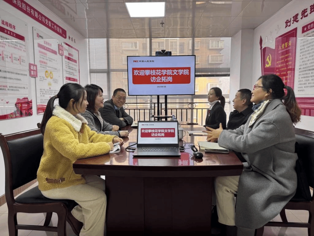为积极响应国家促进高校毕业生就业政策,强化校企合作,拓宽学生就业途径,2025 年 1 月 13 日上午,文学院党总支副书记(主持工作)汪大喹、王春梅以及毕业班辅导员周莹前往人保财险攀枝花分公司开展访企拓岗活动。