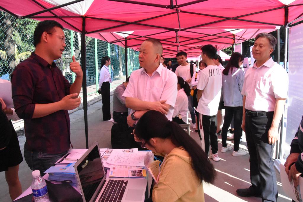 10月29日下午,我校举办台州温岭企业专场招聘会。学校党委书记肖立军、校长王曙光、副校长石维富莅临现场,看望了参会的师生,了解毕业生应聘情况。与温岭市人社局江淼局长和部分企业代表进行了亲切交流。