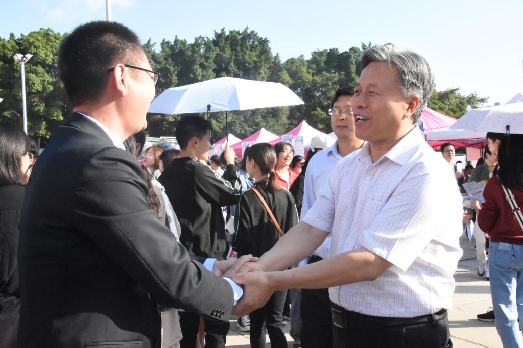 11月2日上午,我校举办2020届毕业生双选会。学校校长王曙光、副校长石维富莅临现场,看望了参会的师生,了解毕业生应聘情况。与部分企业代表进行了亲切交流。