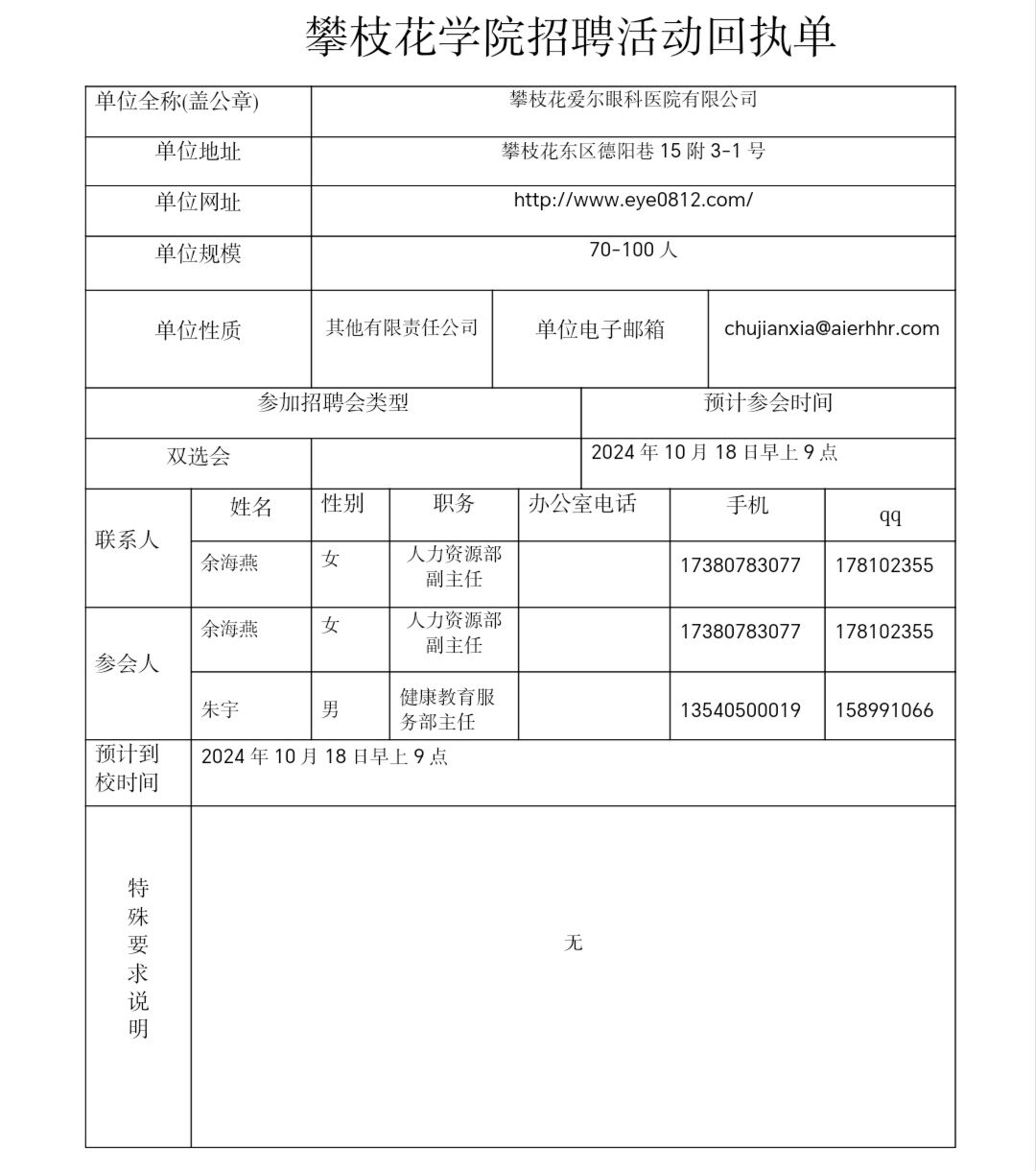 攀枝花爱尔眼科医院有限公司招聘简章