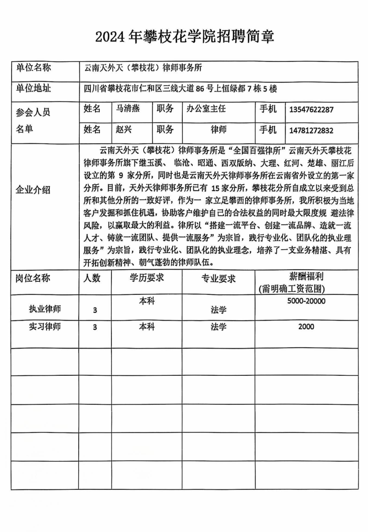 云南天外天律师事务所招聘简章