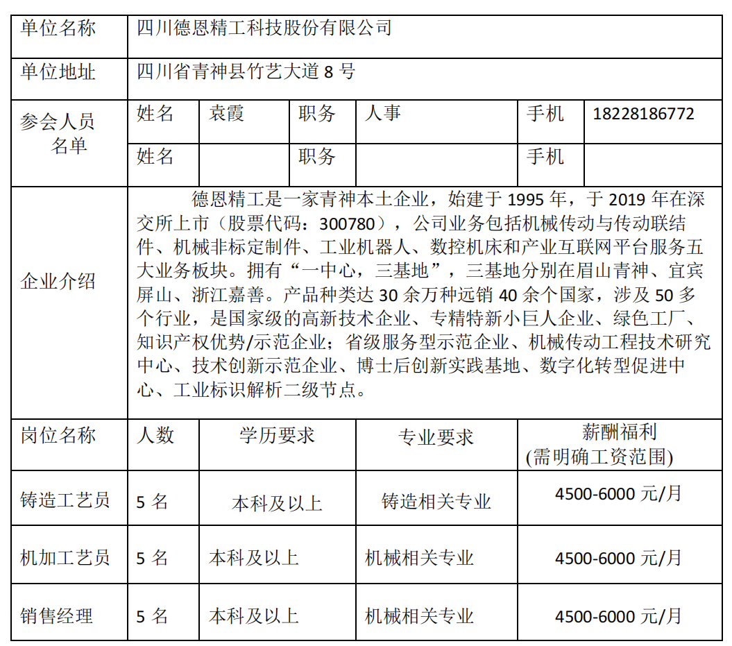 四川德恩精工科技股份有限公司招聘简章