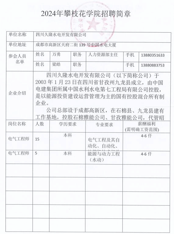 四川玖隆水电开发有限公司招聘简章