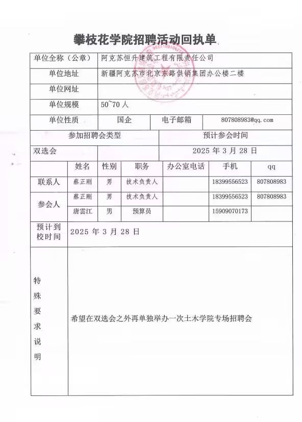 阿克苏恒升建筑工程有限责任公司招聘简章