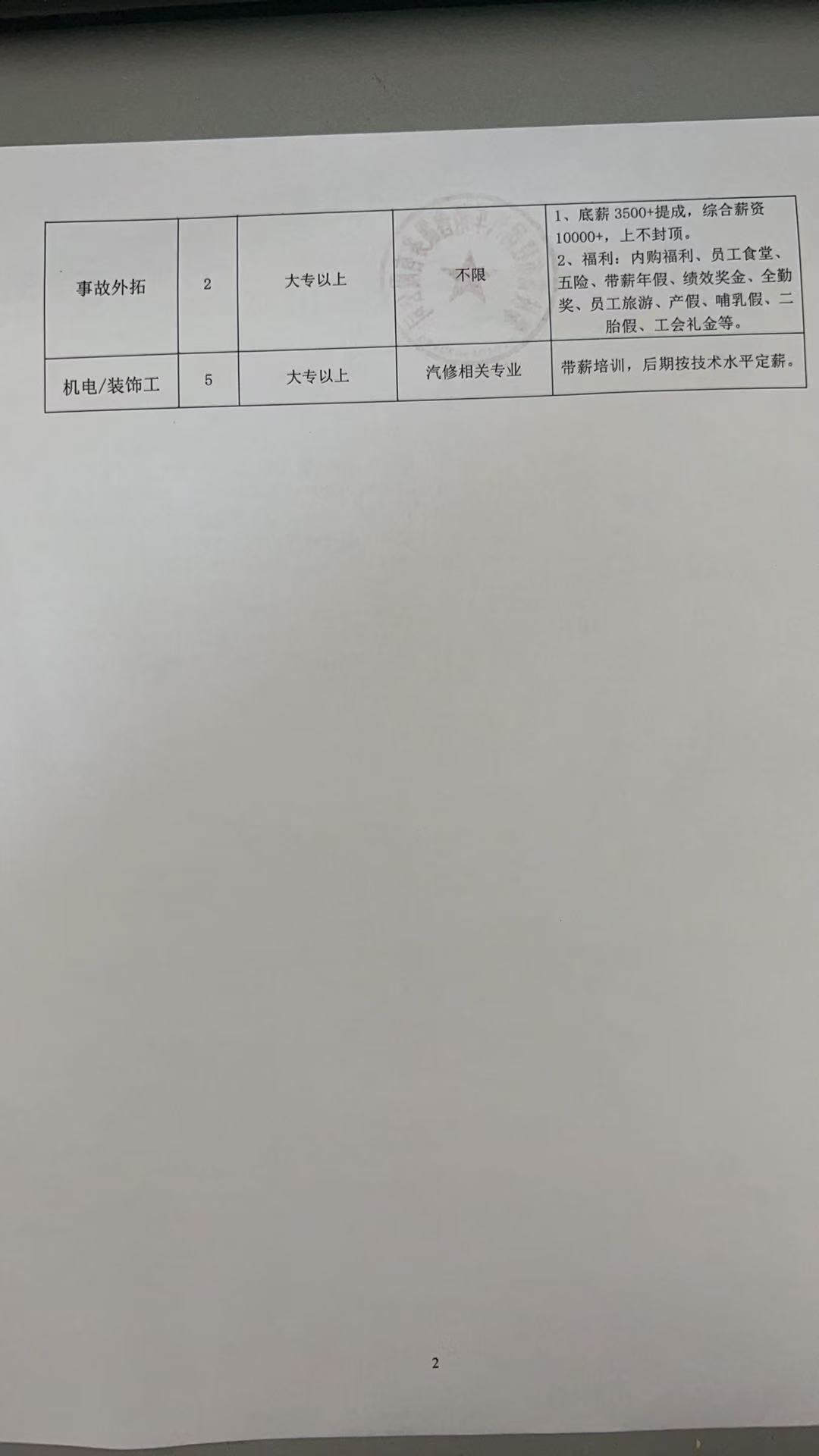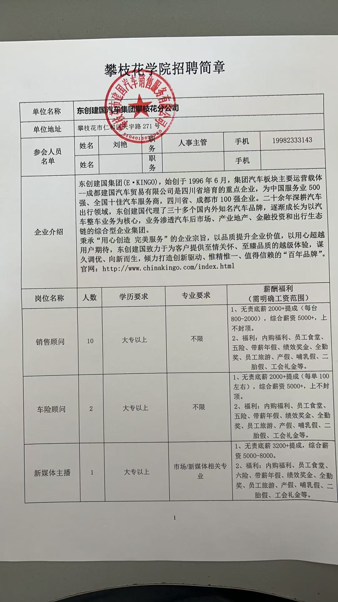 攀枝花市建国汽车销售服务有限公司招聘简章