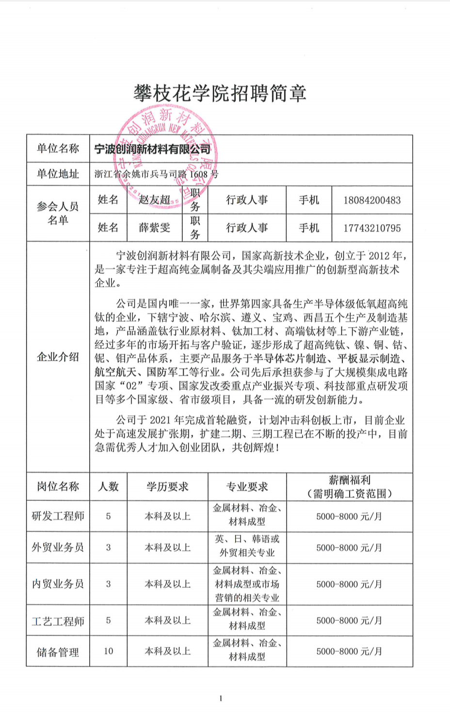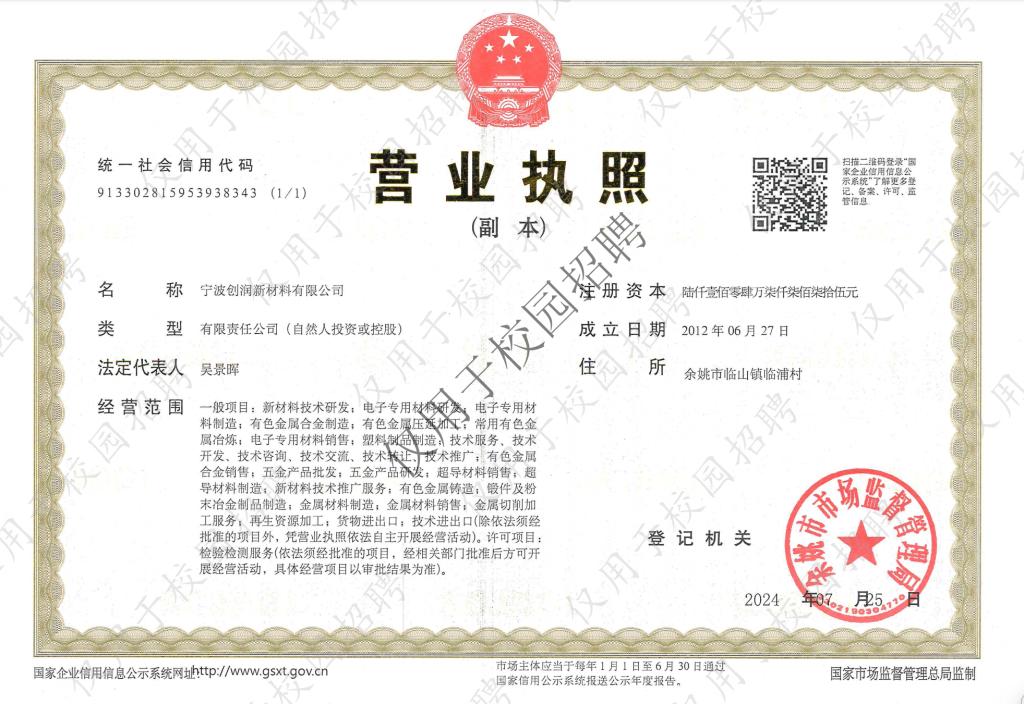 宁波创润新材料有限公司招聘简章