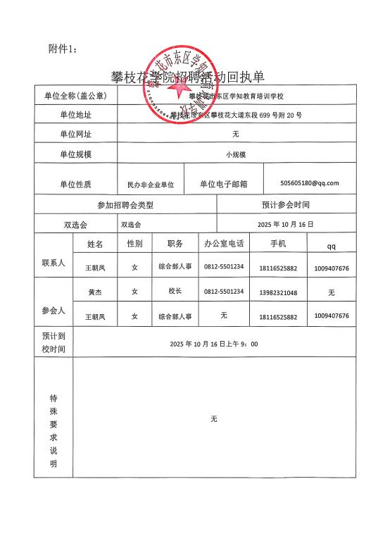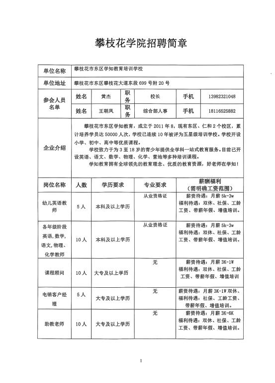 攀枝花市东区学知教育培训学校招聘简章