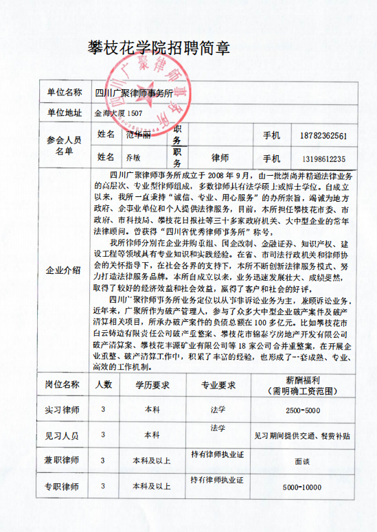 四川广聚律师事务所招聘简章