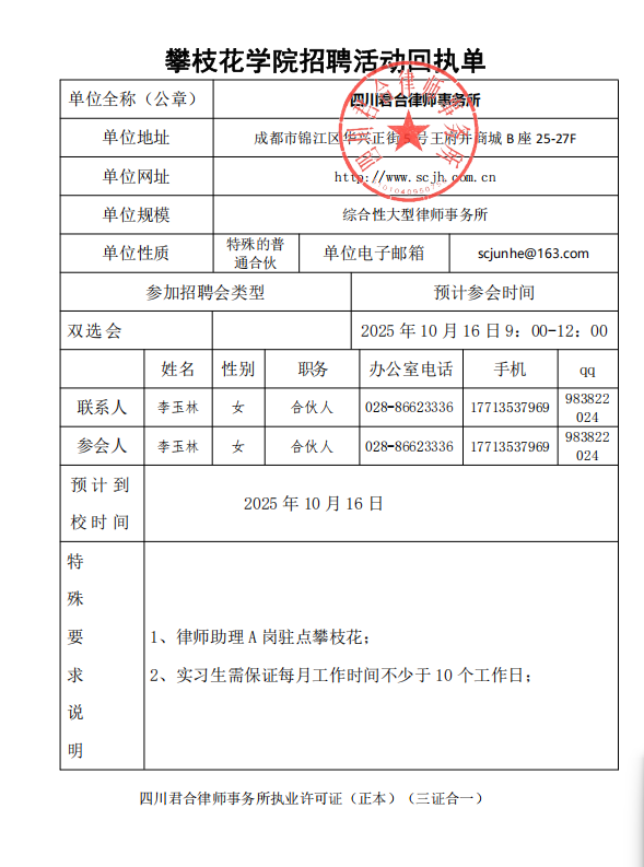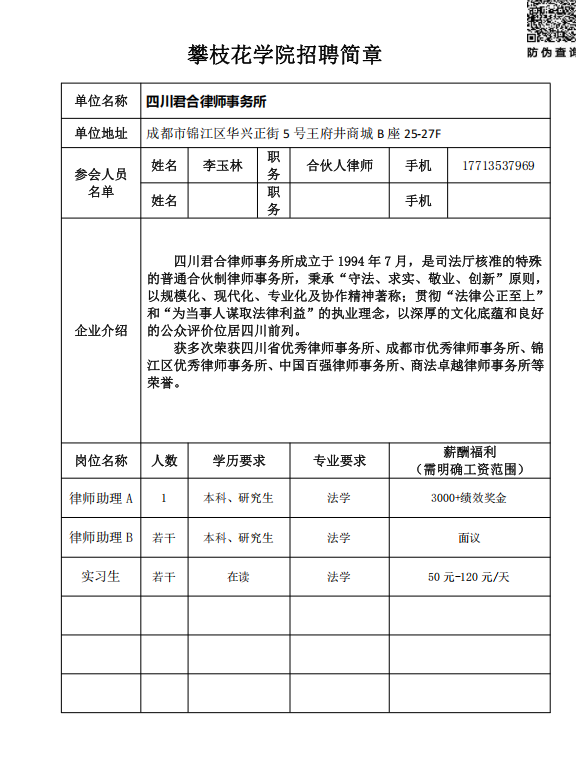 四川君合律师事务所招聘简章