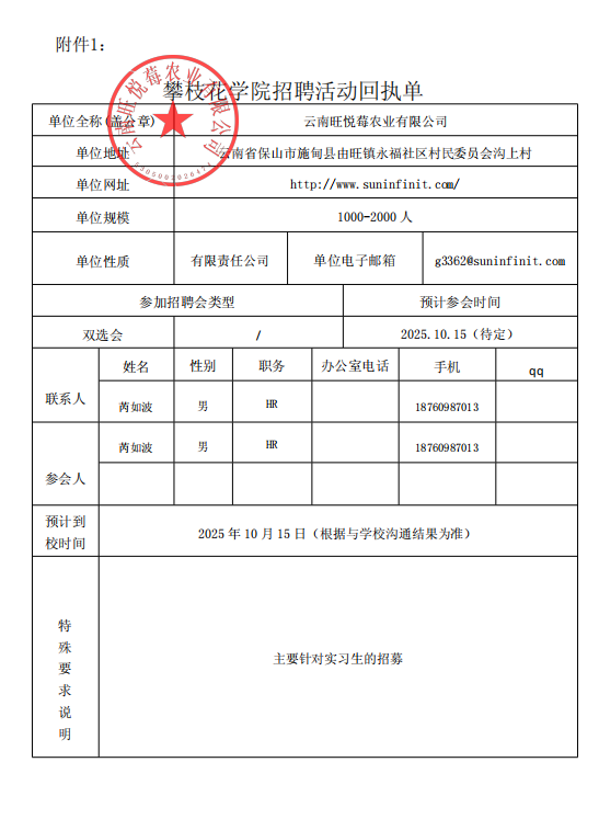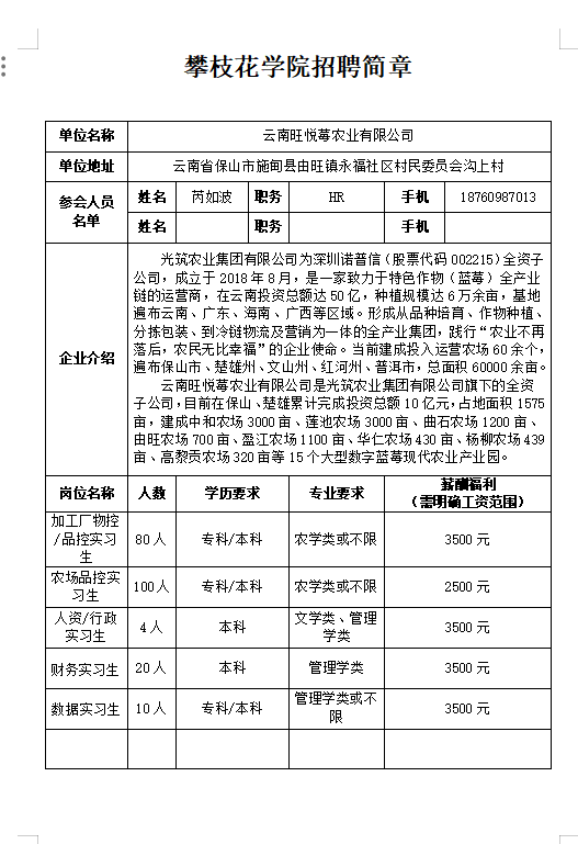 云南旺悦莓农业有限公司招聘简章