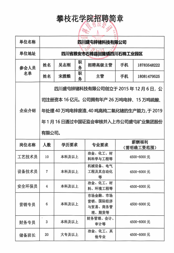 四川盛屯锌锗科技有限公司招聘简章