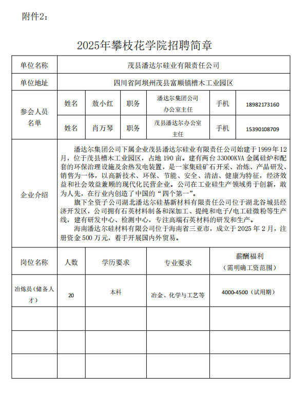 茂县潘达尔硅业有限责任公司始建于 1999 年 12 月,位