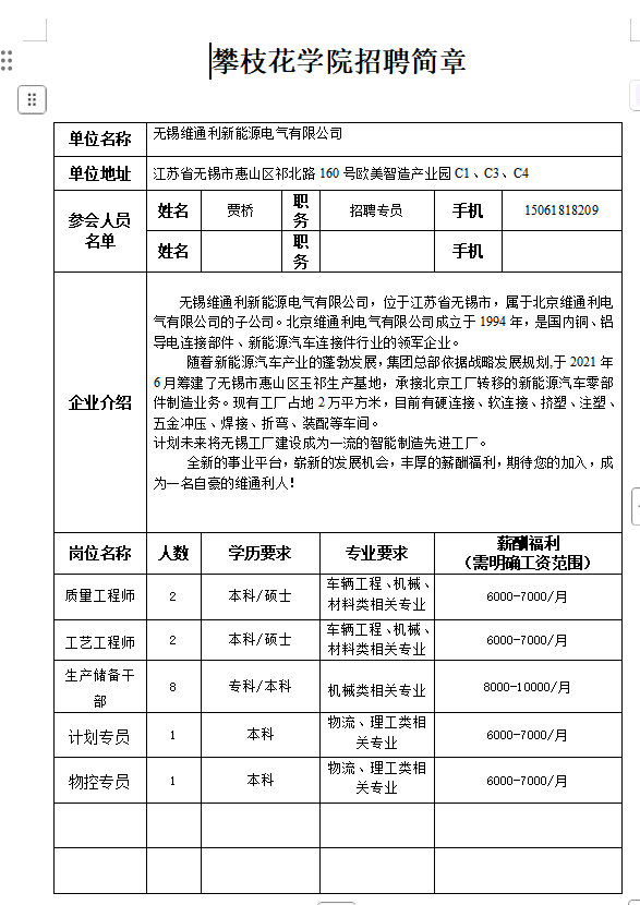 无锡维通利新能源电气有限公司招聘简章
