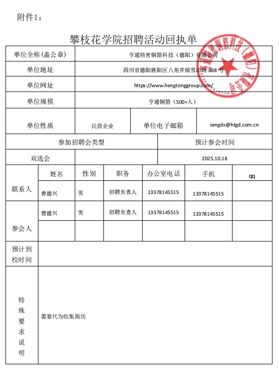 亨通精密铜箔科技(德阳)有限公司招聘简章