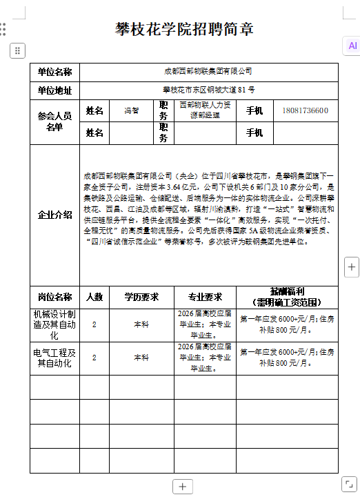 成都西部物联集团有限公司招聘简章