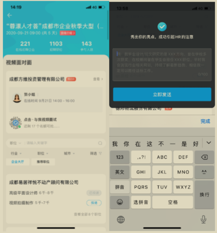 求职者在“空中双选会”开始期间:10 月 12 日-10 月 16 日,通
