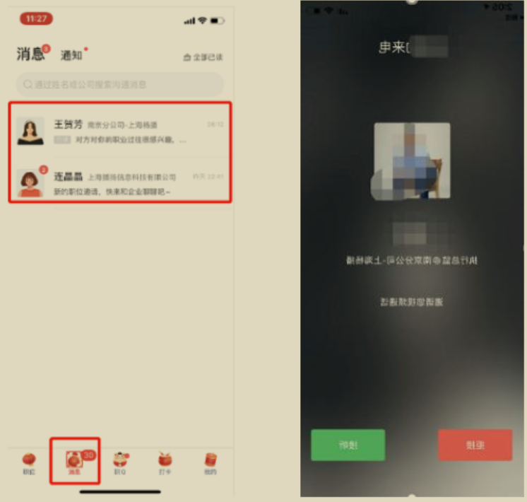 打开智联招聘 APP 在【消息】板块进行文字回复/接听视频弹窗