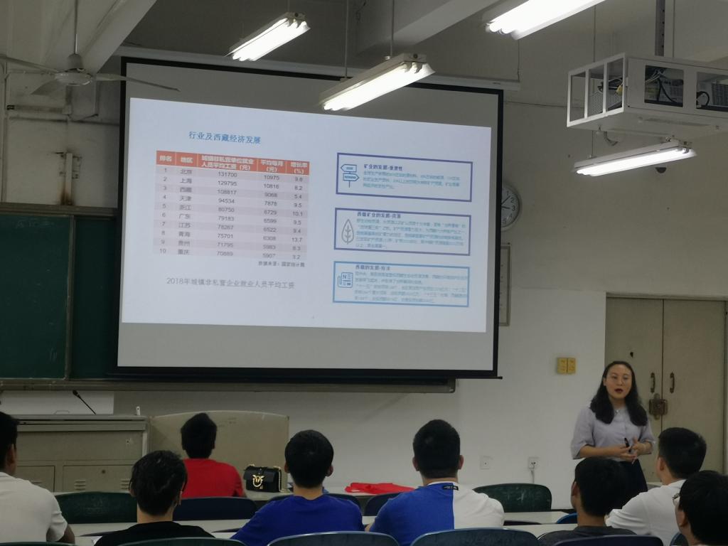 招聘会伊始,赵女士热情地向同学们介绍了公司的基本情况,并希望吃苦耐劳、专业技术较强的同学能够加入公司。公司的薪酬待遇较好,比较符合同学们的需求,且公司的晋升路线较广,晋升空间大。此外,赵女士还介绍了西藏的优良的环境条件,体现了较好的环境优势。