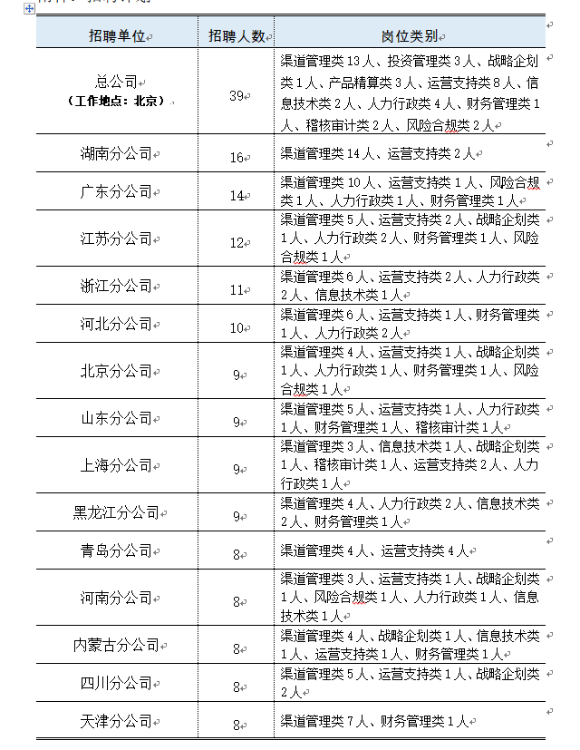 产品精算类、财务管理类、稽核审计类、投资管理类、风险合规类、人力行政类