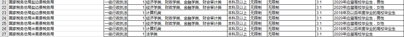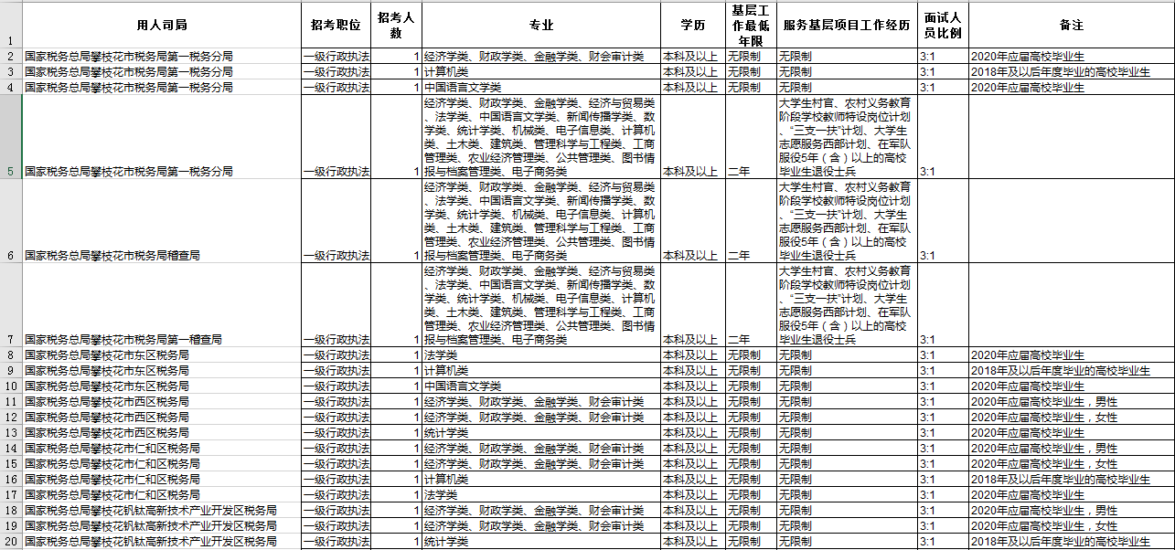 此次国家税务总局攀枝花市税务局招录哪些岗位吧