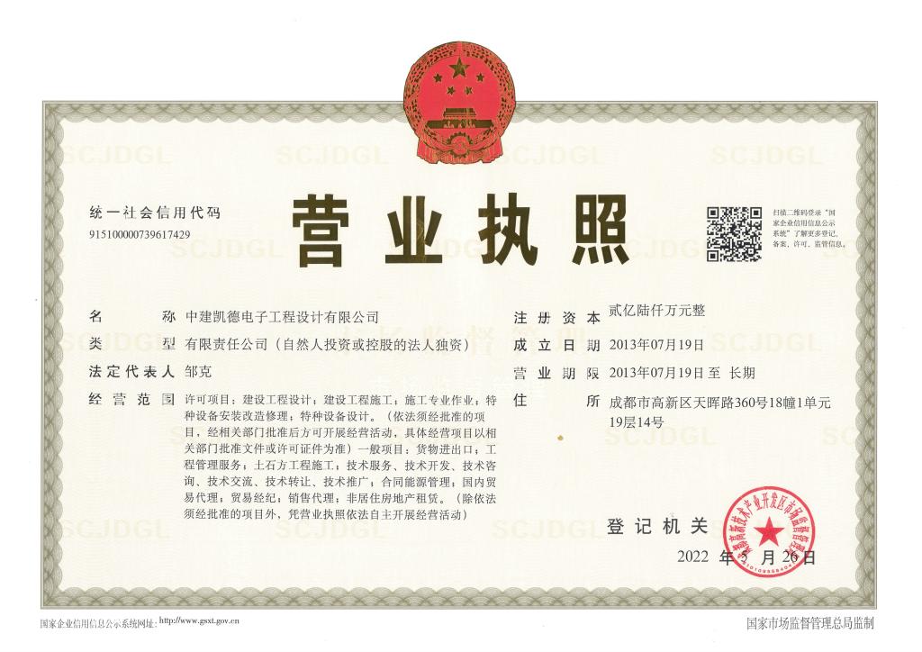 中建凯德电子工程设计有限公司(简称“中建凯德”,英文缩写KIDE取自King Of Designer,即金牌设计之意)成立于2013年7月19日,注册资金2.6亿元,总部位于四川省成都市,设有成都中心、上海中心、吉隆坡中心。