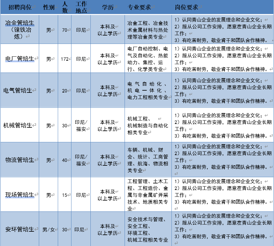 面试地址:福建省宁德市湾坞集中工贸区(青拓工业园区)-永青集团有限公司福建代表处