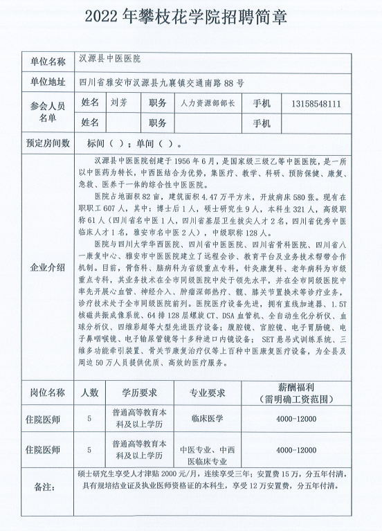 汉源县中医医院招聘简章