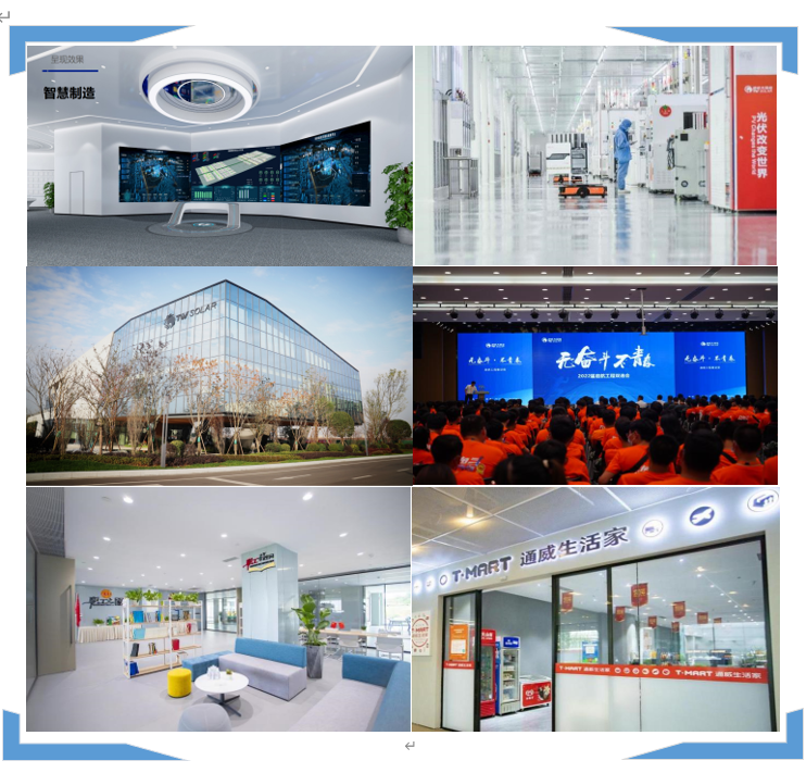 通威集团是深耕绿色农业、绿色能源的大型跨国集团公司,现拥有遍布全国各地及海外地区的300余家分、子公司,员工近5万人,旗下上市公司通威股份市值最高超3000亿元,连续多年荣列“中国企业500强”。在新能源主业方面,通威形成了完整的拥有自主知识产权的光伏新能源产业链条。