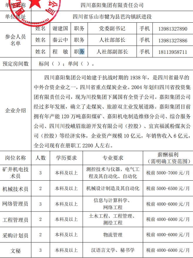 四川嘉阳集团有限责任公司招聘简章