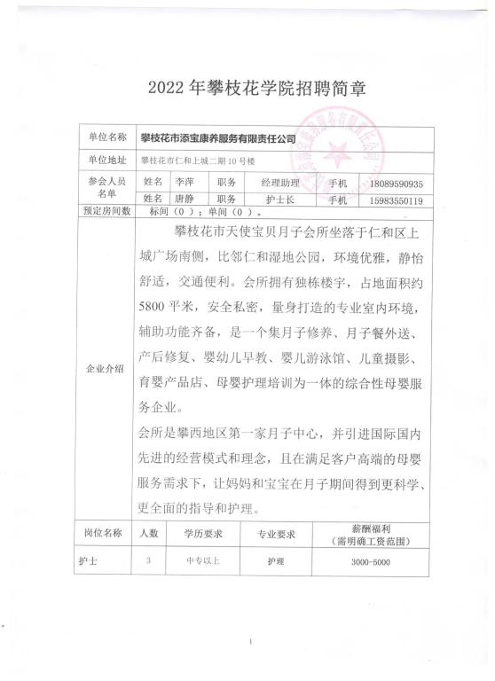 攀枝花市添宝康养服务有限责任公司招聘简章