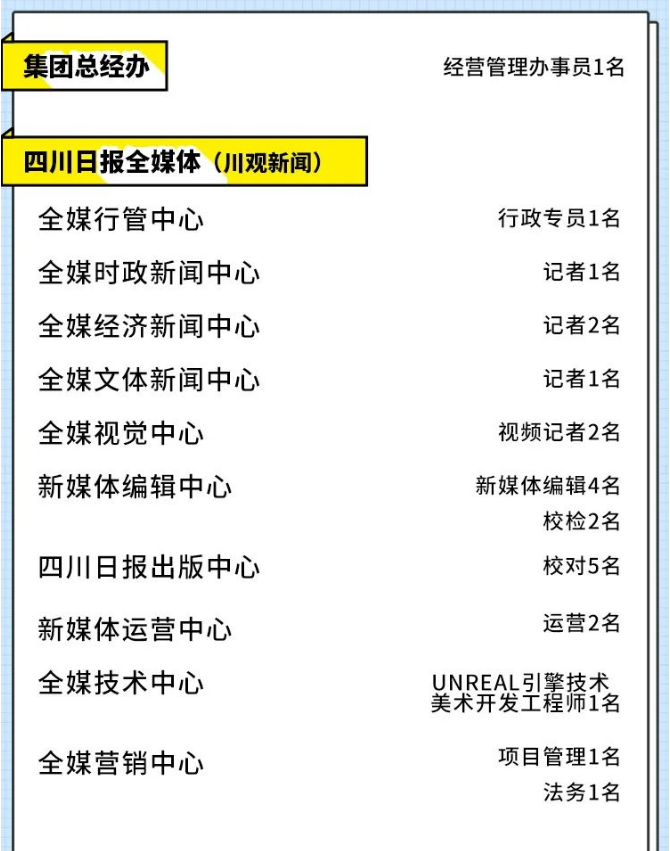 四川日报报业集团招人啦!65个岗位虚位以待,快来加入我们