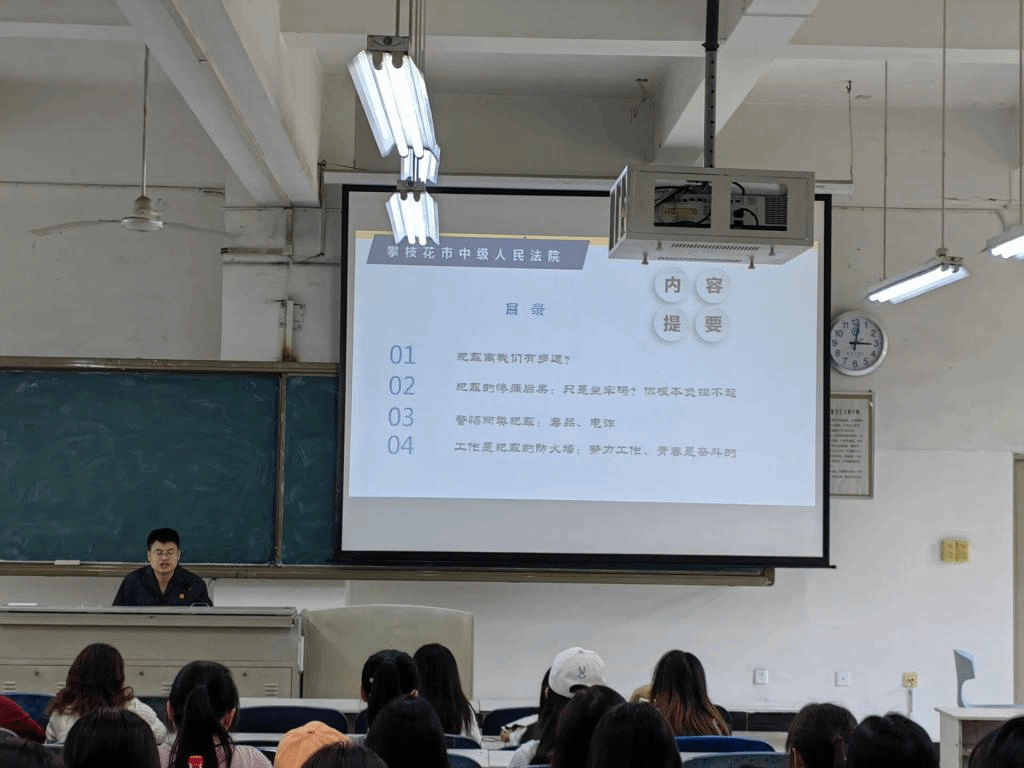 为了向广大攀大学子普及犯罪及其严重后果,在劝诫学生不犯罪的同时警惕和防范毒品和电信诈骗,教育学生远离犯罪、毒品和警惕电诈,主讲人用生动的语言,形象的案例做了一系列具体的阐释。主讲人就犯罪与我们的距离;犯罪的惨痛后果;两类犯罪:毒品,电诈;以及工作是犯罪的防火墙等方面进行了讲解,为同学们带来了一场具有重要意义的讲座。