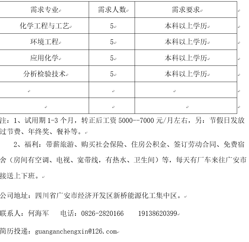 现因发展需要,诚聘以下职位,具体如下(工作地点:四川省广安市)