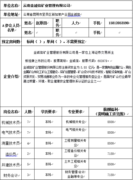 云南金诚信矿业管理有限公司招聘简章