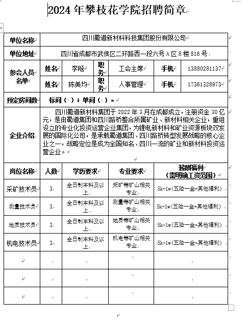 四川蜀道新材料科技集团股份招聘简章