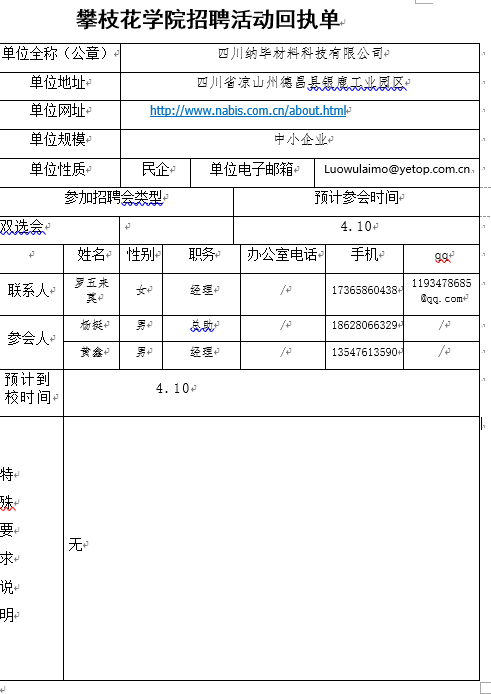 四川纳毕材料科技有限公司招聘简章