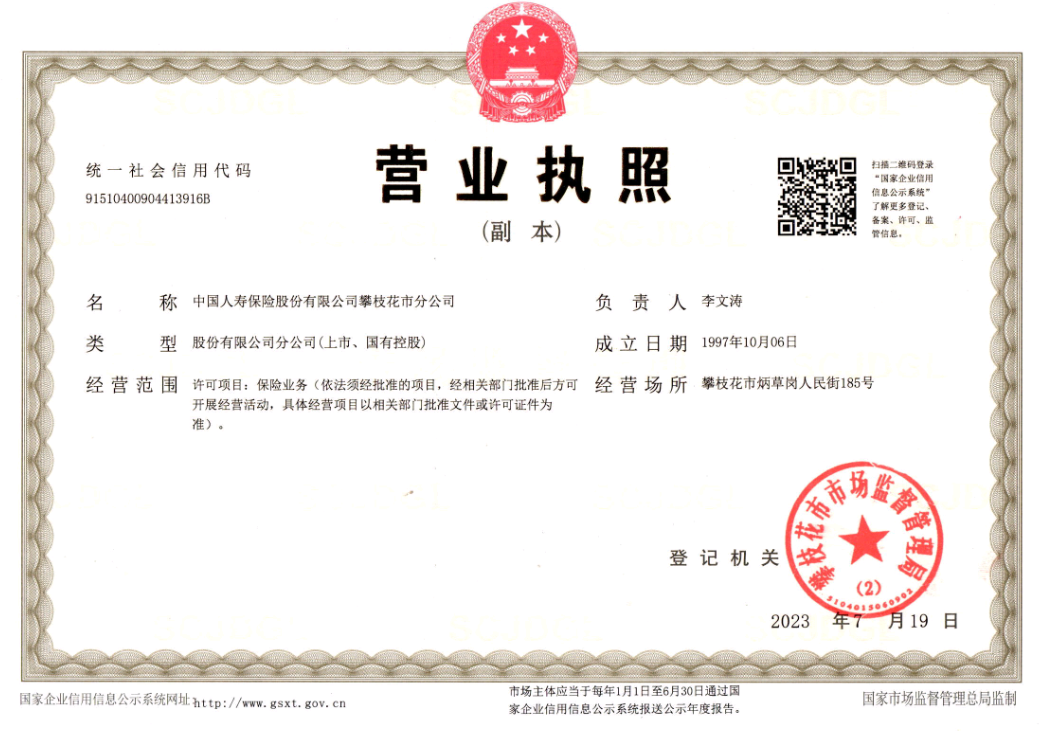 中国人寿保险股份有限公司攀枝花市分公司