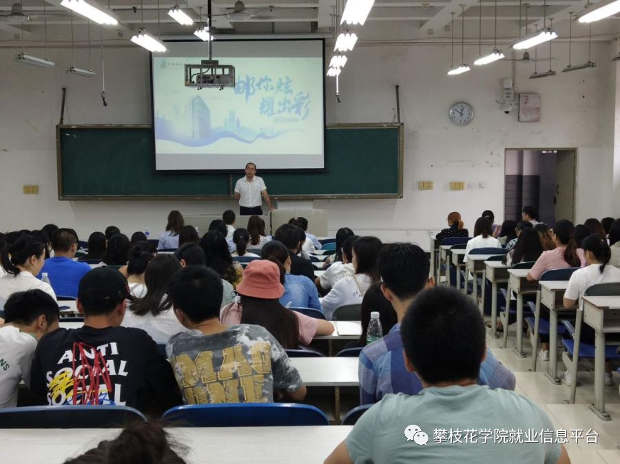 2019年9月3日上午10点,中国邮政储蓄银行攀枝花分行专场招聘会于二教2-1举行。出席此次专场的有攀枝花市分行党委书记即行长张建、攀枝花学院招生就业处处长刘东康、就业处马斌、邮政储蓄银行人力资源小组。此外,约120名攀大学子参加此次专场招聘。