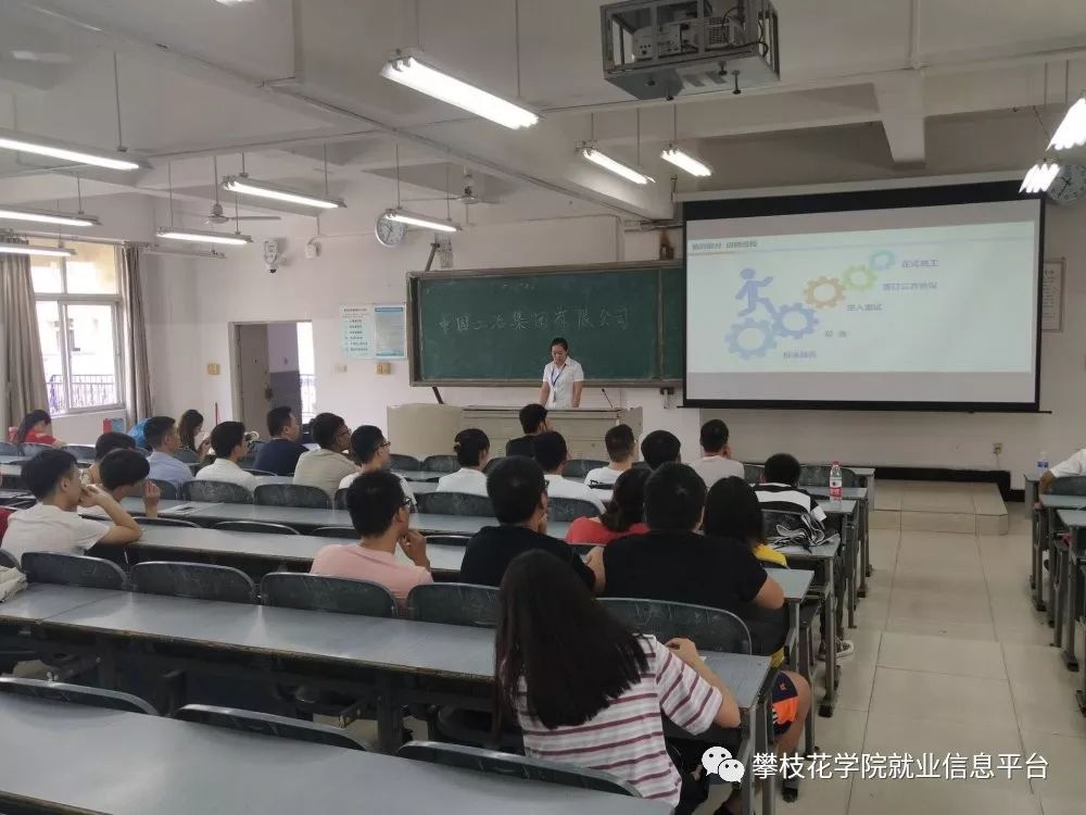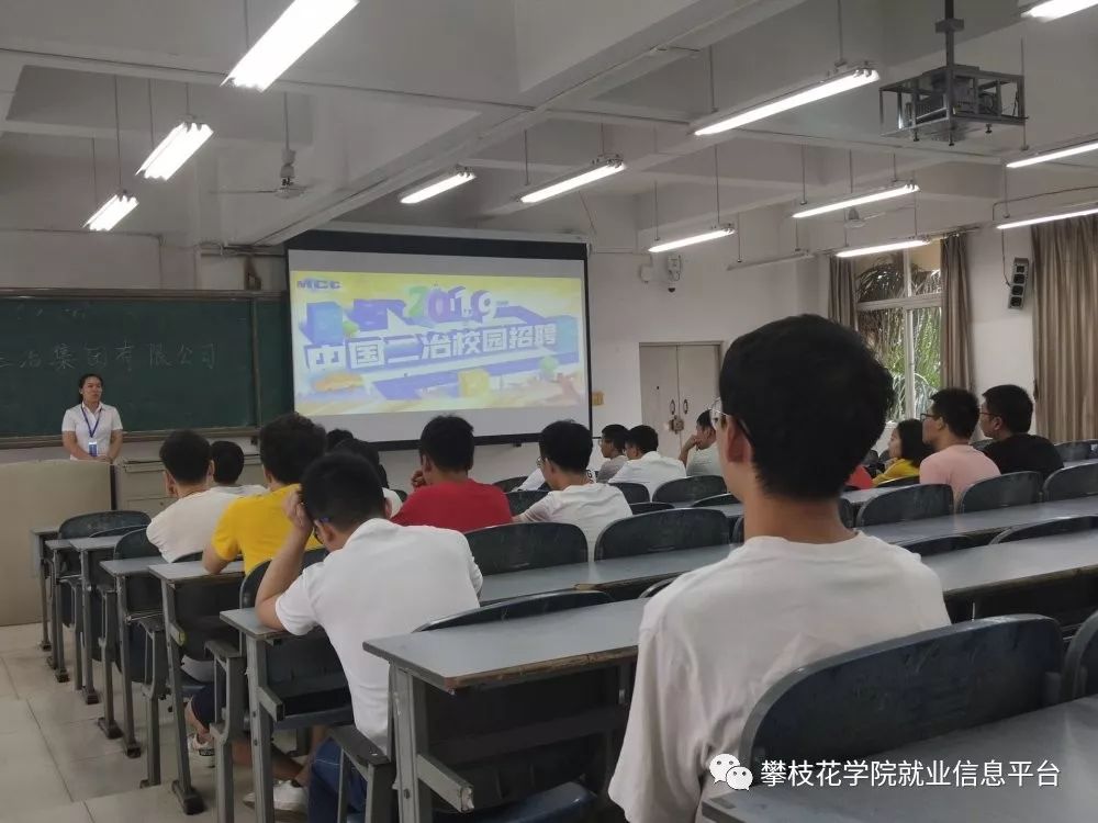 2019年9月19日上午10点,中国二冶集团有限公司于2教201举行校园聘招会,出席本次招聘会的有中国二冶集团4位负责人与70余名攀大学子。