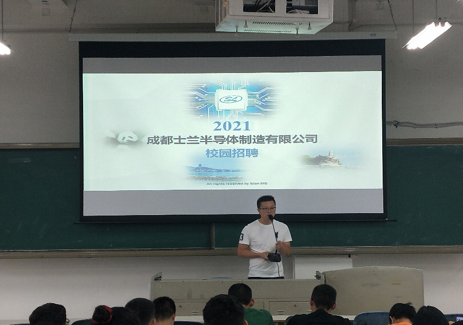 2020年10月16日星期五下午2点,成都士兰半导体制造有限公司在我校二教2-2举行了2021届毕业生专场招聘会。招聘会由贵公司代表人王亮主讲,此外还有公司代表季宝泉参与。本次招聘会一共有67位同学参与。