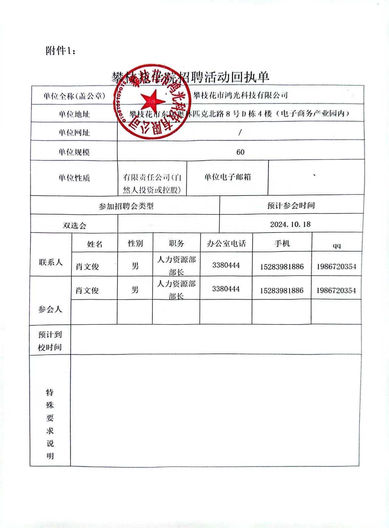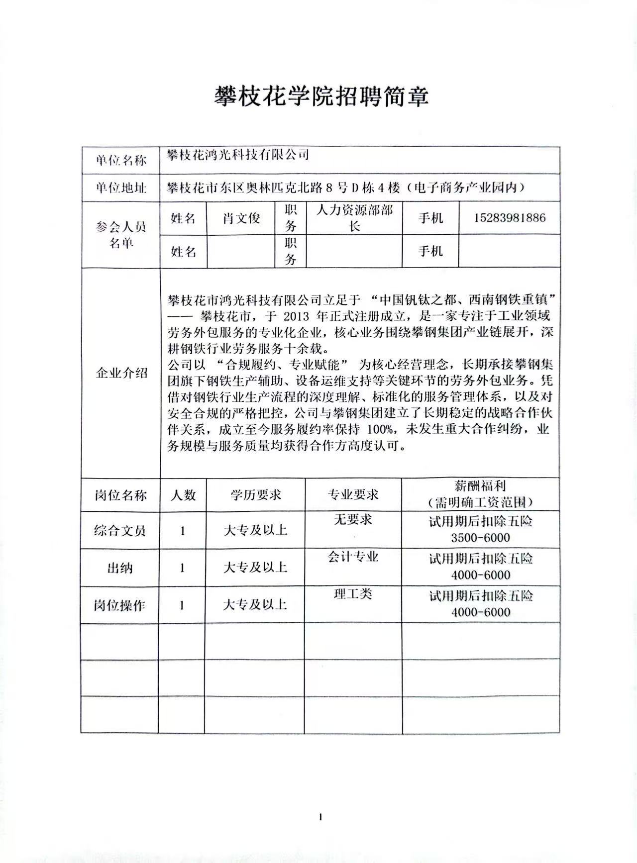 攀枝花鸿光科技有限公司招聘简章